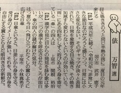 6月17日の読売新聞朝刊「読売歌壇 俵万智・選」に掲載されました。俵さんから評もいただいております。どうもありがとうございます。